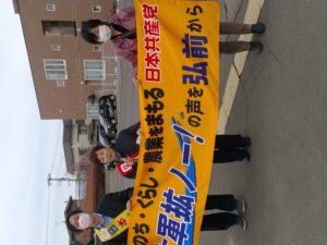 4月の朝街宣 9 4月 Posted on 2024年4月9日2024年6月1日Author ando-harumi 0 4月2日 東高校前 4月5日 五重塔角 写真なし 4月9日 桝形交差点 写真なし 4月11日 大清水交差点で 4月16日 松森町交差点で 4月18日 野田保健センター前で 4月23日 安原・泉野交差点で 4月30日 大町交差点で