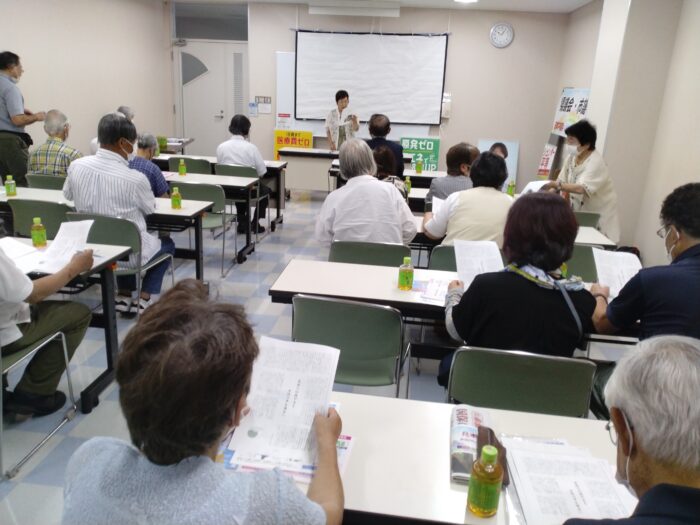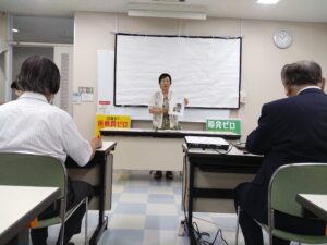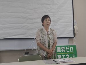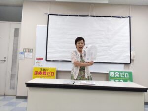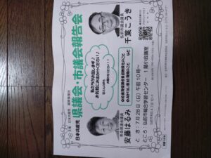 私からは、学校給食費無償化交付金制度、温暖化におけるりんご生産者への支援・モモシンクイガ交信かく乱剤補助、放任園対策、女性支援法施行、夜間中学、原子力災害避難、中間貯蔵施設等について報告しました。それらに対して、放任園対策のフリー園地の負担について、原発マネー依存度拡大についてなどの質問他、見切り発車した小学校5年生からの英語教育の問題点などご意見を頂きました。