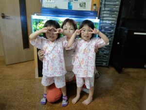 同居の双子ちゃんに甚平さんを買ってあげました。さあこれからねぷた鑑賞に!