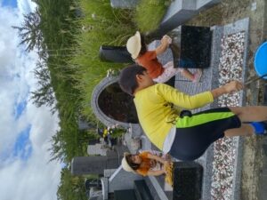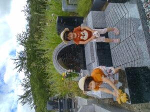 亡夫墓参り 25 8月 Posted on 2024年8月25日Author ando-harumi 0 8月12日 同居家族と共に市営墓地の一角にあるお墓参りしてきました。 みんなでお墓をきれいにしてお参りしました。じいじきっと喜んでいるでしょう! お墓参りの後は皆で食事会。3歳児の2人も一人前ずつお膳が用意されました。