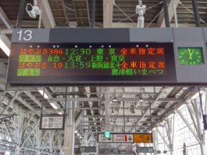 台風の接近で当初の新幹線切符を早め12時半に出発の予定でしたが、1時間ほど遅れて出発し無事前日に東京に着きました。
