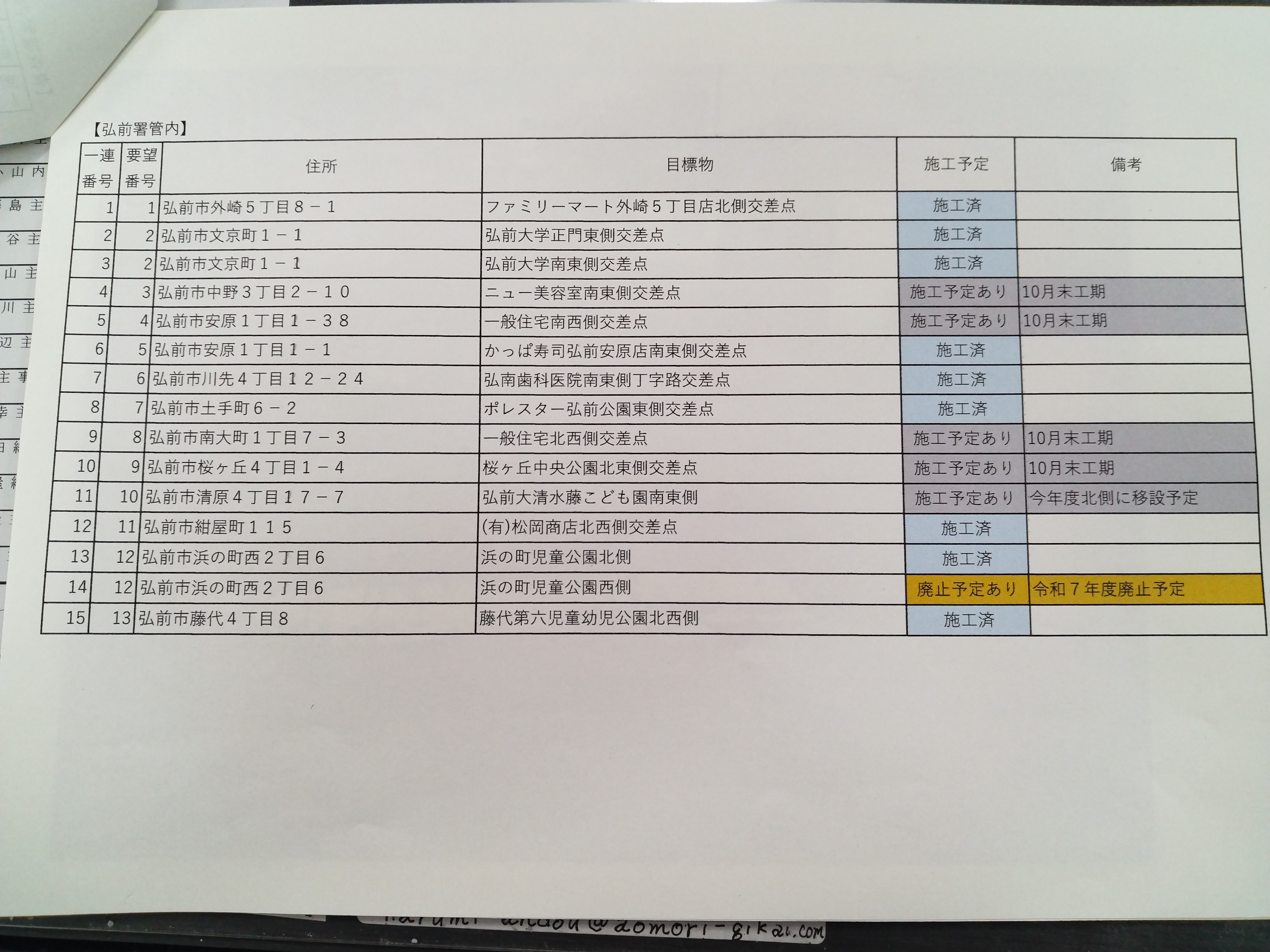 これは私が出していた弘前の箇所です。青森市の箇所も私からも出していましたが、それは別紙にて回答がありました。