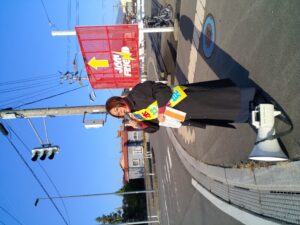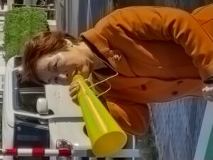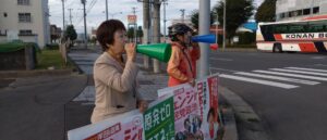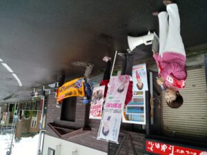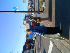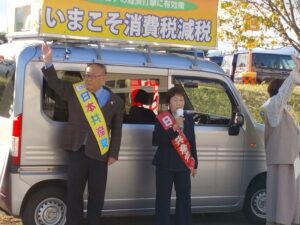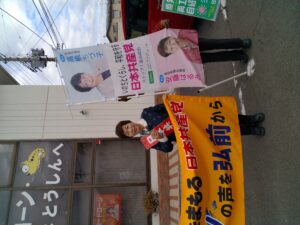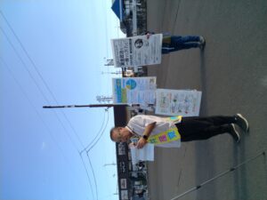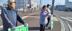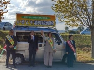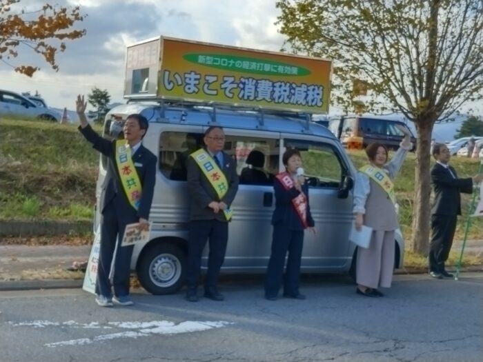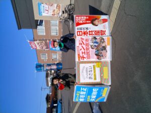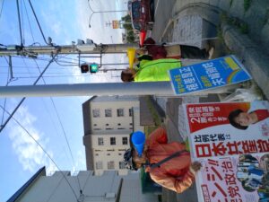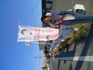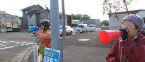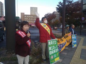 10月10日 健生病院前で3人の市議団と地区委員長らと共に