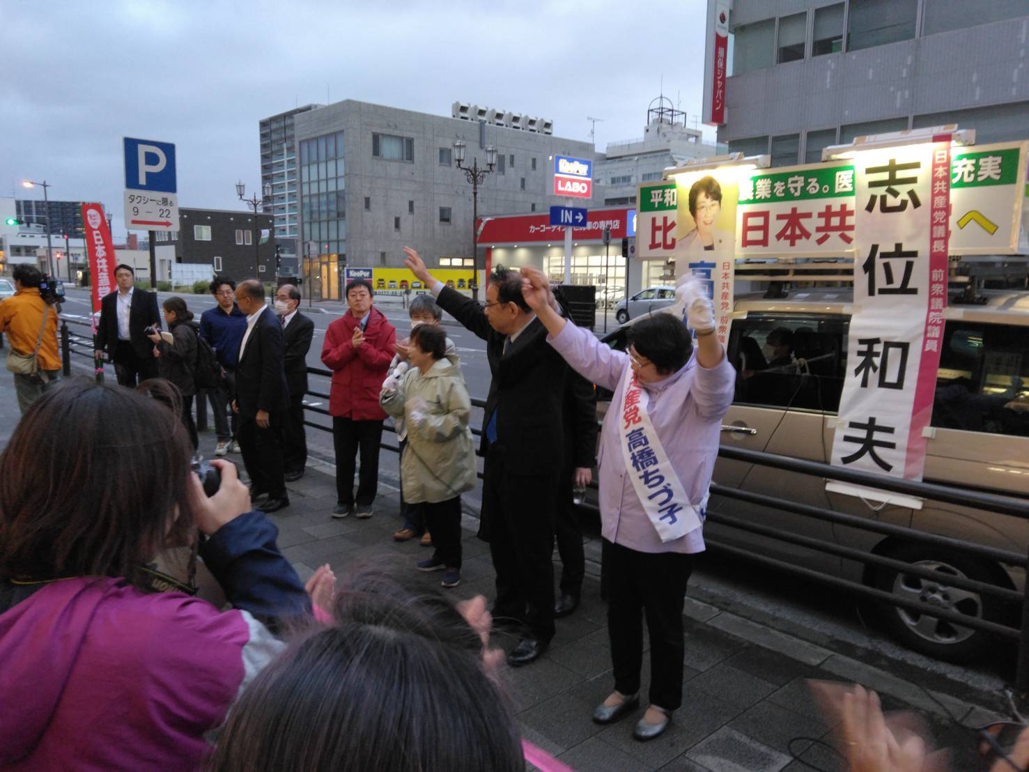 一度場所を離れていた方々が新たな開催時間にお集まりいただき高橋千鶴子比例候補の演説と志位和夫議長の演説に寒い中、最後まで熱心に聞いてくださり、議長の確信に満ちた話と共に感動しました。