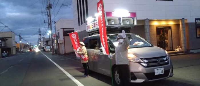 政党カーで弘前市内街宣 24 10月 Posted on 2024年10月24日Author ando-harumi 0 10月20日 弘前市内和徳・撫牛子・境関方面で須藤えりか弘前市議と共に衆議院選挙中盤戦の訴えをしました。