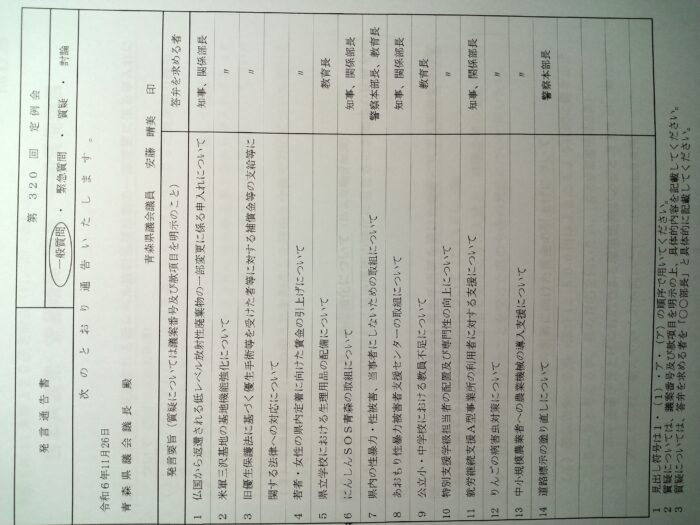 第320回定例会で日本共産党県議団を代表して一般質問しました。
