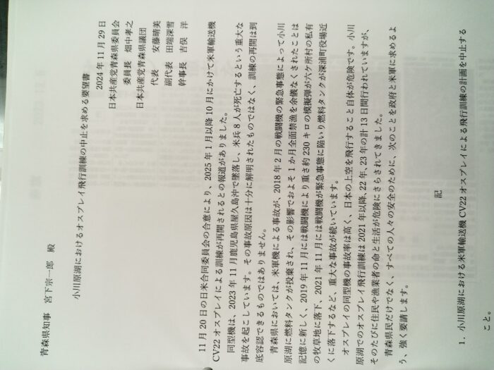 11月29日以下のもう申し入れをしました。