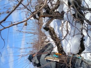 この状況を見ると木からの雪下ろしは並大抵でないとわかります。