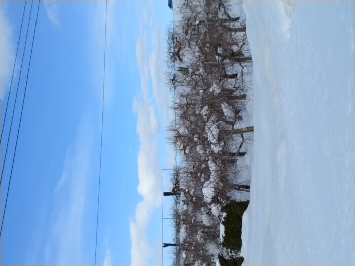 それでも30年40年たつ太い幹を持ち枝ぶりの良いりんご程雪が積もり、被害を受けやすいとのこと。