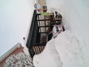 わが家の北側の窓が屋根から落ちてきた雪で完全に埋まり光が一切入らなくなりました。