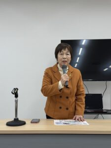 衆議院東北ブロック比例予定候補高橋千鶴子さんは、大船渡火災現場調査で来れなくなり代わりに日本共産党県員会書記長藤原あやさんが情勢報告をしました。