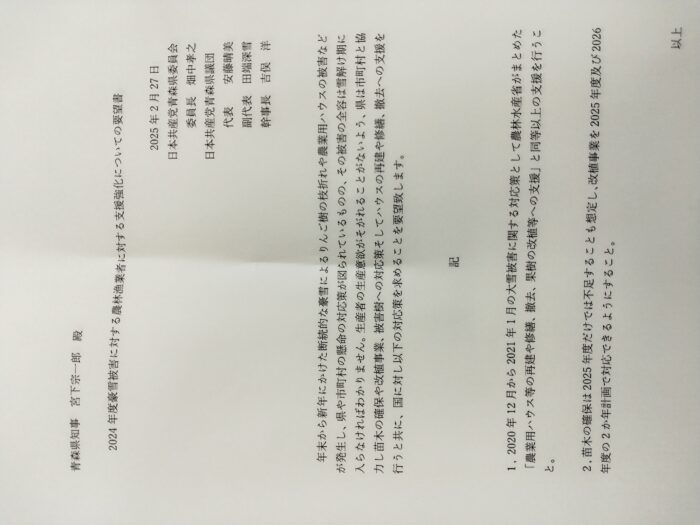 2月27日 県議団と青森県委員会で申し入れをしました。