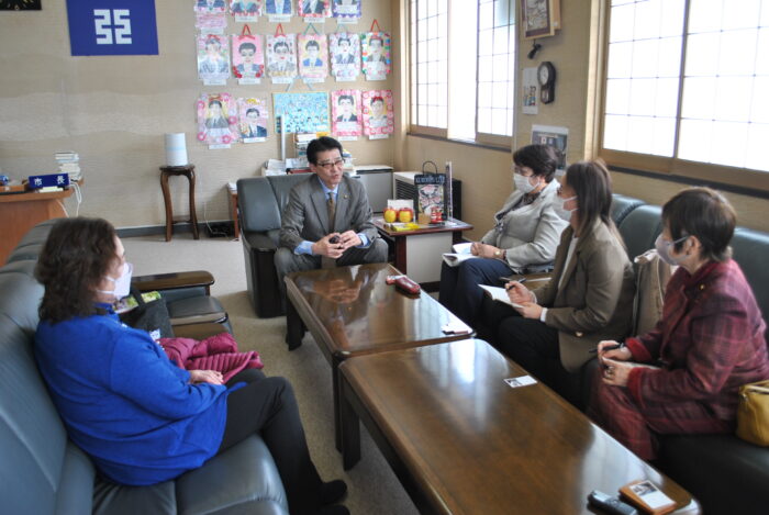 2月19日 高橋千鶴子・衆院東北比例代表、おぎの優子・参議院青森選挙区候補と、平川市は斎藤律子さんと、黒石市は工藤禎子さんが、そして私も同行してそれぞれ市長と懇談を深しました。