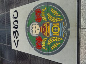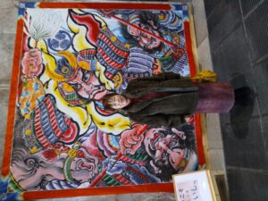 玄関にこんな飾り物が。黒石はこけしの街です。