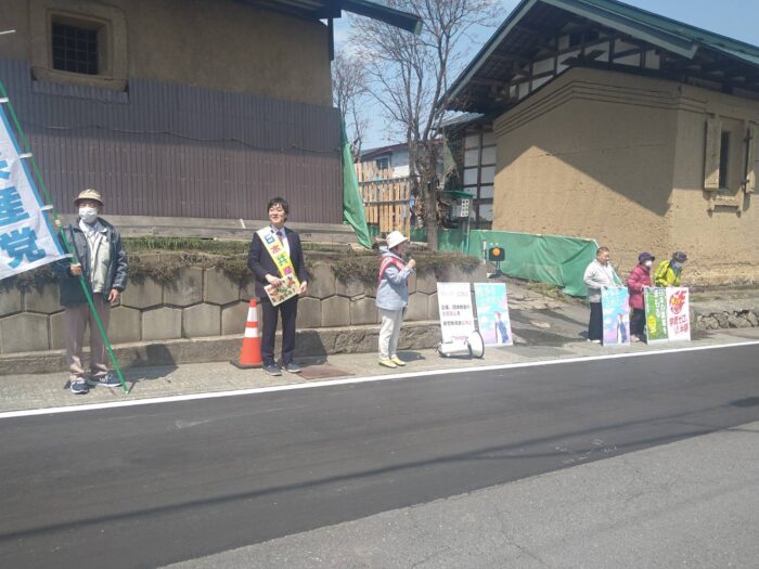 坂元で街宣 5 5月 Posted on 2025年5月5日2025年5月6日Author ando-harumi 0 4月12日 小沢支部の皆さんとともに久渡寺手前の坂元で三浦こう市議と街宣で訴える。 応援して下さる90代女性と固い握手を交わす。