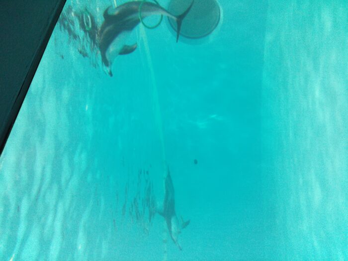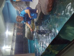 いるかに餌やりしながら訓練している様子でした。