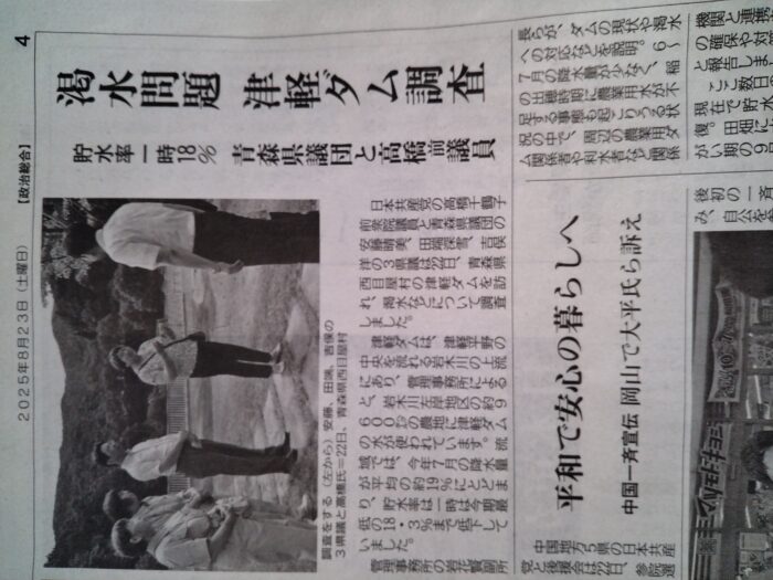 8月22日 高橋千鶴子前衆議院議員と県議団で津軽ダムの貯水状況調査に行きました。