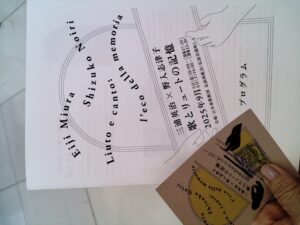 9月6日 ご案内をいただいていた「三浦英二×野入志津子 歌とリュートの記憶」に行って音楽を楽しんできました。