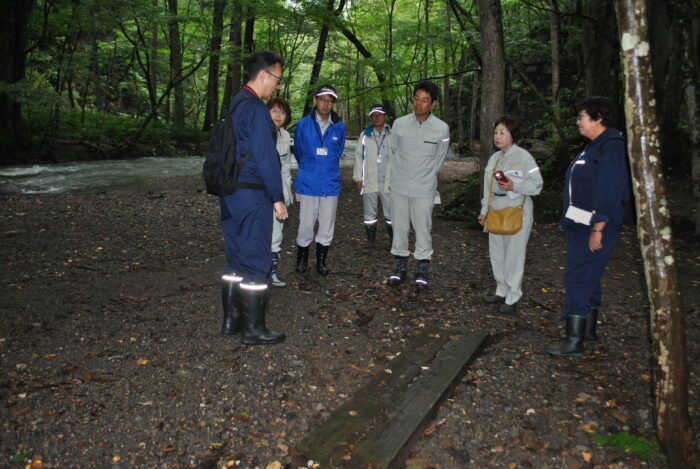 8月20日の豪雨により車道や遊歩道が一時通行止め(車道に続き昨日遊歩道も全線開通)となった奥入瀬渓流の調査を、高橋千鶴子前衆議院議員と3人の県議団で行いました。