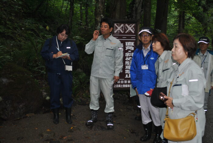 道路を管理する上北県土整備事務所や遊歩道を管理する県観光交流推進部より現地説明を受けました。