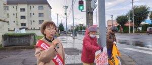 10月の朝街宣 16 11月 Posted on 2025年11月16日2025年12月13日Author ando-harumi 0 10月7日 東高前 千葉市議と 10月14日松森町 10月22日野田保健センター前 10月22日 須藤えりか市議と共に