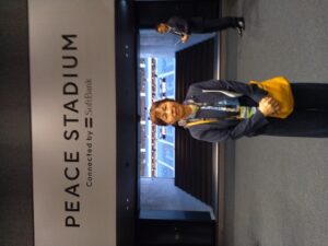 その後徒歩移動で立派なサッカー場とバスケット場が備えられた複合施設・長崎スタジアムシティの視察。