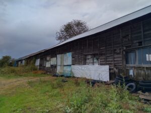 次に鯵ヶ沢にあるかつての北東北最大演習場「山田野兵舎」(1906年開設・11棟中1棟だけ残存)を見学。