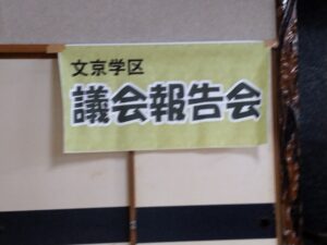 文京議会報告会 20 11月 Posted on 2025年11月20日2025年11月20日Author ando-harumi 0 11月8日 文京後援会の議会報告会に出席しました。 千葉こうき市議と報告し、質問や要望を聞きました。 ここでも熊の問題で盛り上がりました。狩猟免許をお持ちだった方の参加もあり、やはり高齢化で免許を返納したそうー。 警察が免許返納をかなり指導しているそうで、彼の狩猟団体は2人しか残っていないとのことでした。