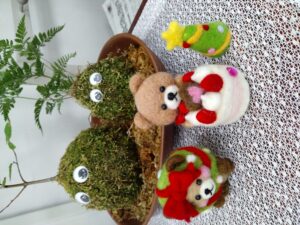 共産党控室の入り口に飾ってあります。事務局の豊田さん手作り!後ろはよしまたさん持参の苔の置物。