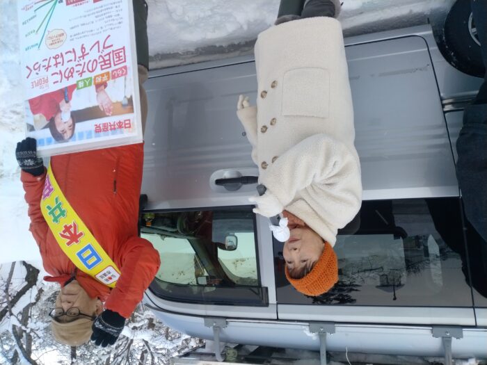 これを受け日本共産党津軽地区委員会としても1月23日市議団と私県議会議員安藤晴美が市役所近くの追手門近くで街宣しました。