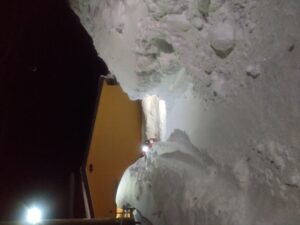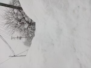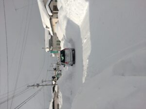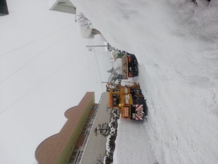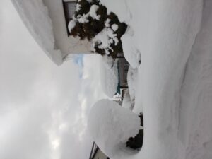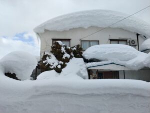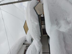 わが家の北側は、屋根から落ちてきた雪が防雪柵の間に積もりに積もって窓が塞がれる事態に。