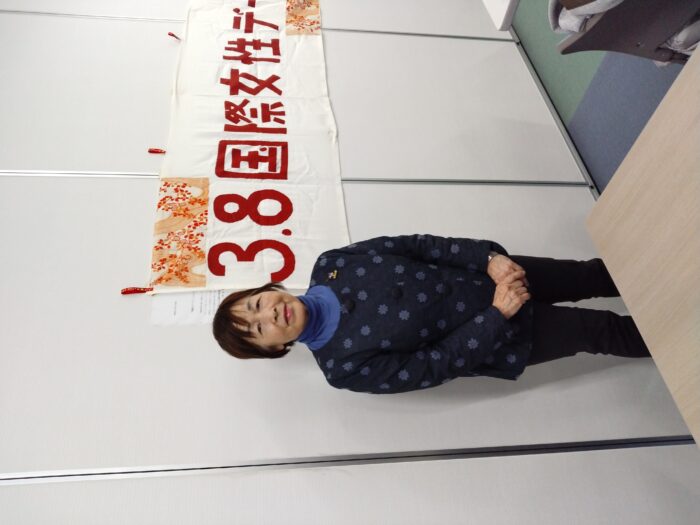 3月8日(日)3・8国際女性デーの取組としてお昼前に30間いとくアルカディア店前で赤い物を身につけてのアピール行動をしました。