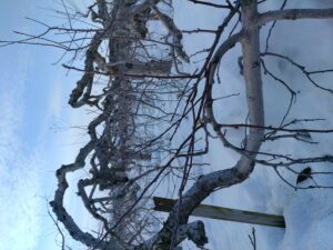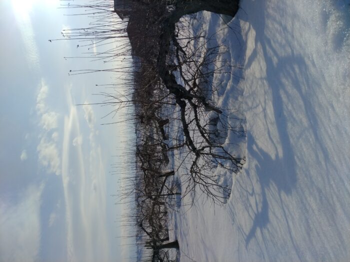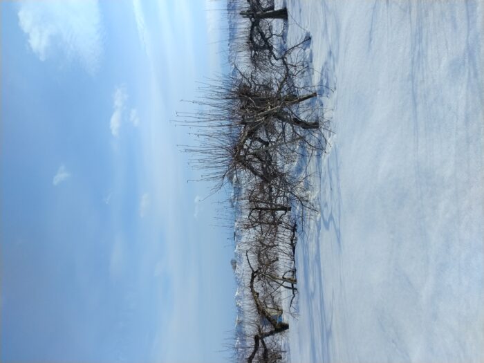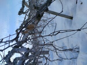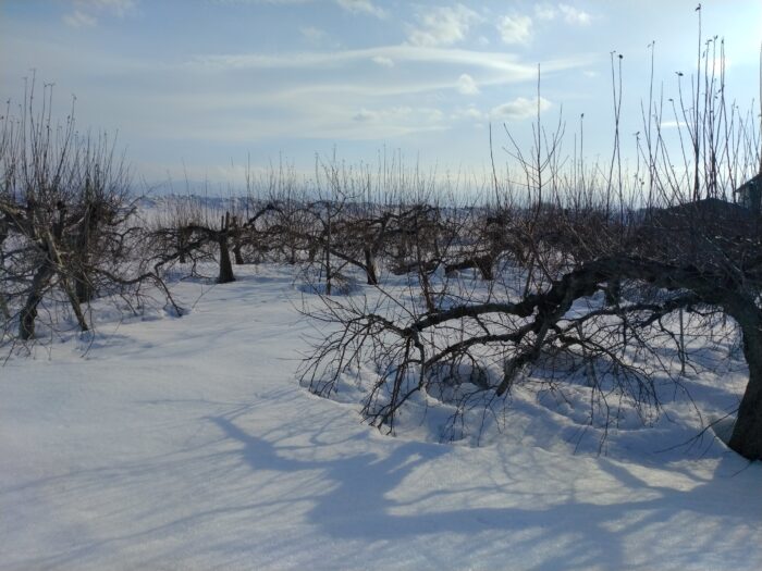 2月21日 板柳町の農園にてりんごの雪害状況調査