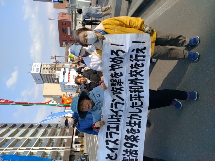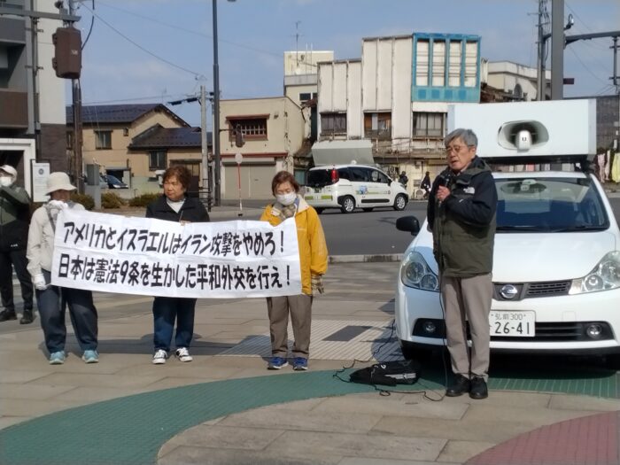 戦争反対市民集会 2 4月 Posted on 2026年4月2日Author ando-harumi 0 3月28日 戦争反対市民集会・パレードに政党に案内があり、集会で津軽地区委員会を代表してご挨拶をさせていただ来ました。 お小田切弁護士が実行委員長として挨拶 風が強い日でした。