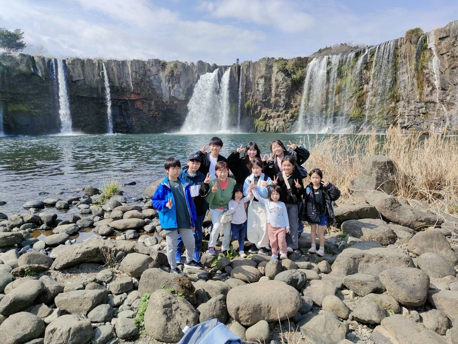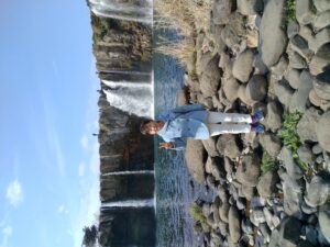 原尻の滝にて孫と私