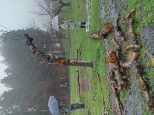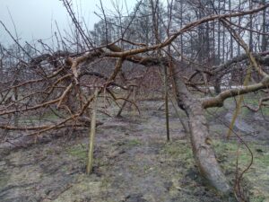 雪害に強いともいわれる矮化栽培の樹もひどくやられていました。