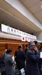 19日弘前市県武道館で1500人の人が集ってりんご黒星病危機突破大会が行われ参加しました。